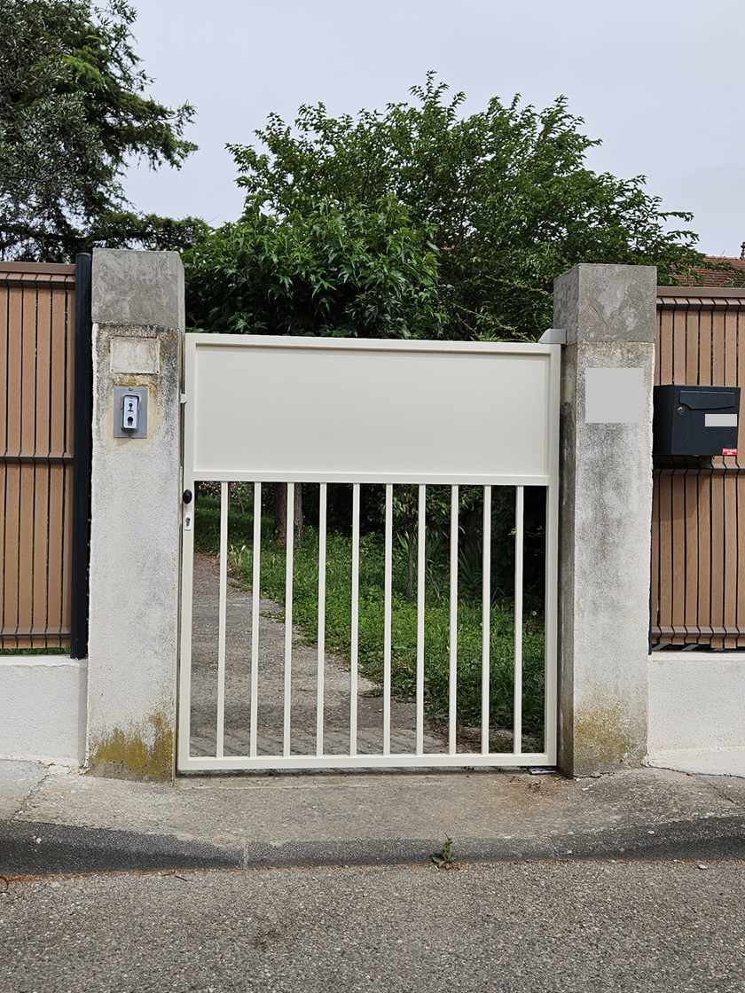 Chez AAFA, nous sommes spécialisés dans la conception et l'installation de portillons métalliques manuels et motorisés pour les particuliers et les professionnels. Basés à Piolenc, nous intervenons dans le Vaucluse et les départements limitrophes. Aujourd'hui, nous vous présentons l'une de nos réalisations : un portillon métallique manuel, thermolaqué Blanc perlé RAL 1013, installé à Vaison-la-Romaine.